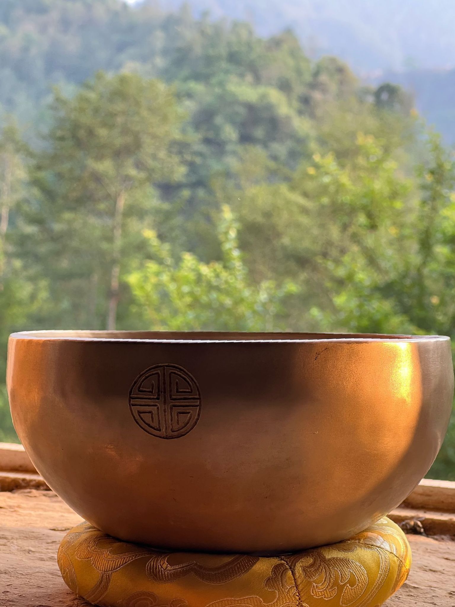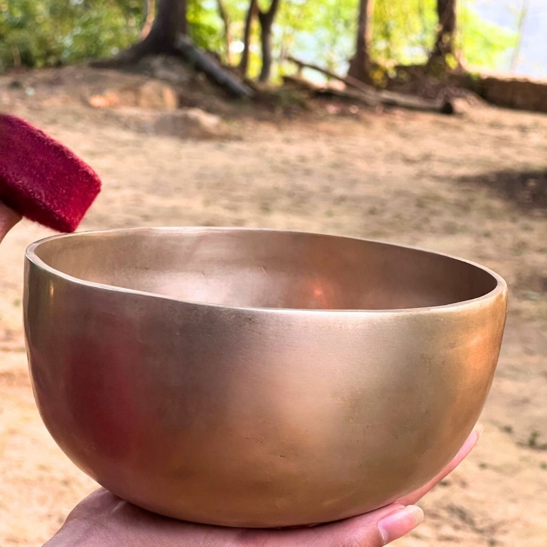 The tone of a hand-made singing bowl evokes both a bell and a textured wave carried by calming frequencies, creating an immediate immersion that is both pleasant & therapeutic.